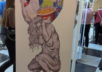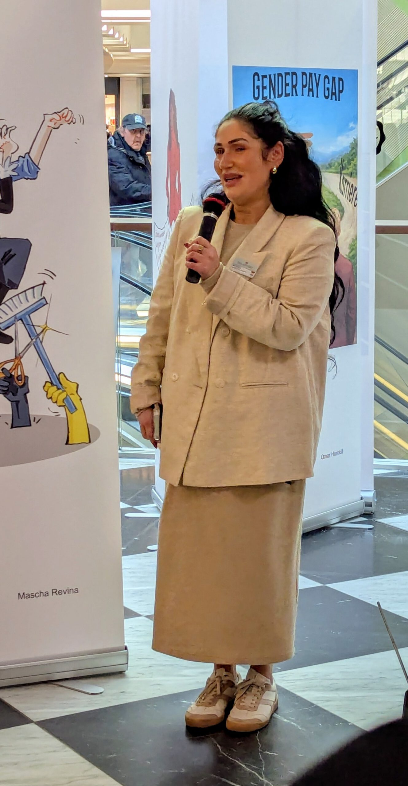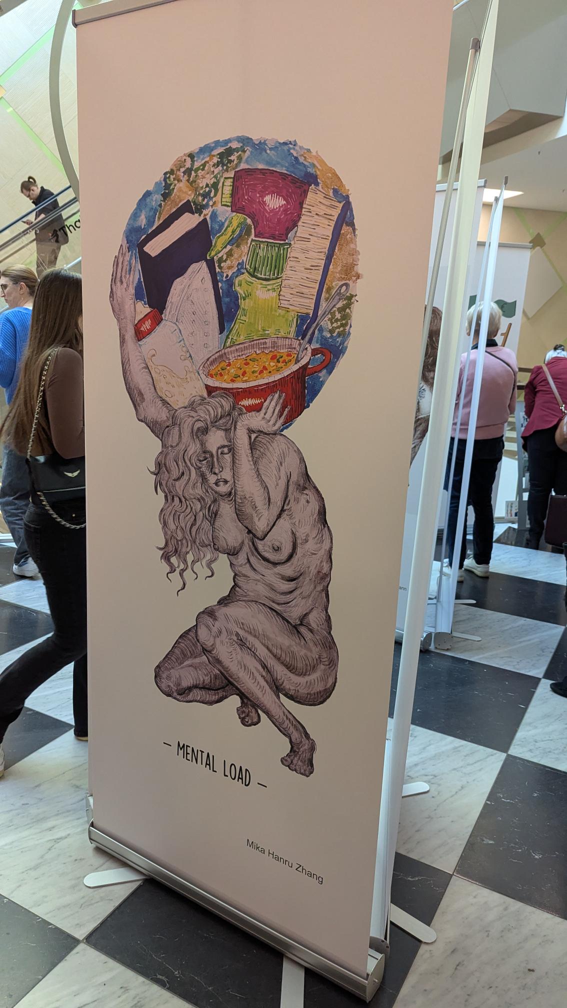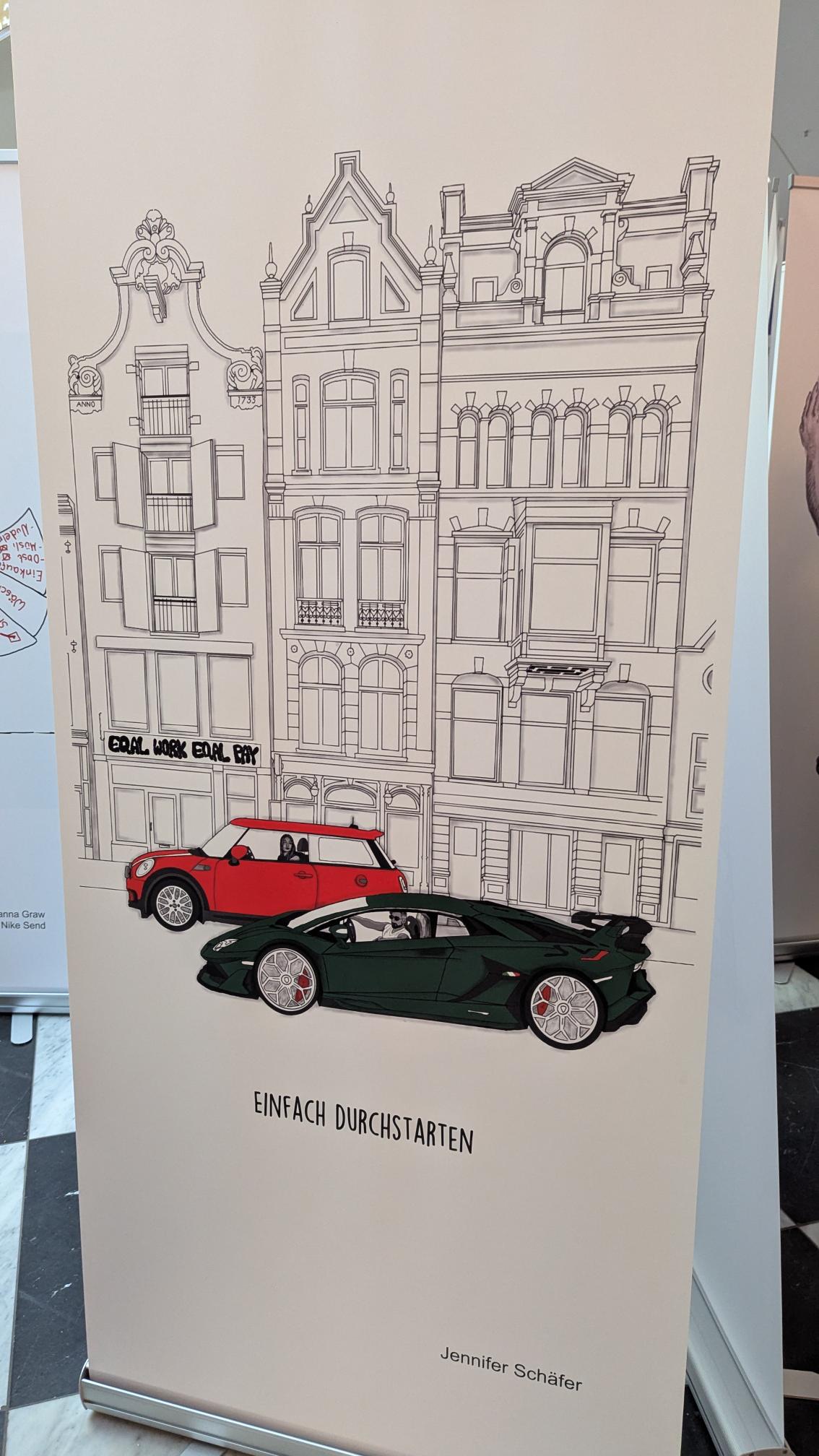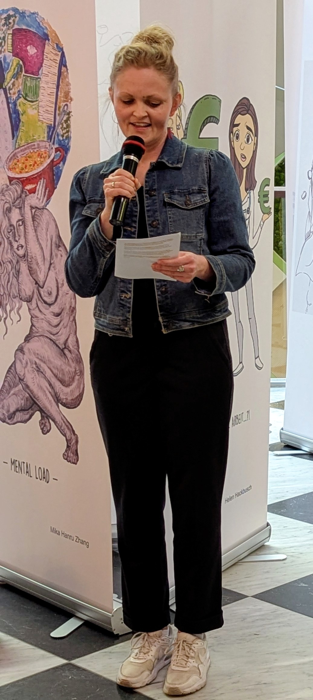 Am Freitag, den 27.02.2026, dem Equal Pay Day, haben Schülerinnen und Schüler der Jahrgangstufe 11 des Bildungsgangs GTA (AHR) im Palais Vest in Recklinghausen eine Ausstellung zum Equal Pay Day eröffnet. Dies ist der Tag, bis zu welchem Frauen im Gegensatz zu Männern quasi unentgeltlich arbeiten, und an dem die Schülerinnen und Schüler zusammen mit der Gleichstellungsstelle der Stadt- sowie der Kreisverwaltung Recklinghausen aufmerksam machen wollten. Um 8:30 Uhr kamen fleißige Schülerinnen und Schüler der Klassen A1G1 und A1G2 trotz Bus- und Bahnstreik ins Palais Vest angereist, um ihre auf Roll-ups gedruckten Werke vor der Rezeption im Erdgeschoss des Palais aufzustellen. Um 15 Uhr ging es dann los, und die Ausstellung wurde feierlich eröffnet. Die Gleichstellungsbeauftragten der Stadt- bzw. Kreisverwaltung Recklinghausen, Frauke Lindberg und Ilona Kalnik-Franke, eröffneten sie Ausstellung. Sie waren Anfang des Schuljahres an die Gestaltungsabteilung des Max-Born-Berufskollegs herangetreten, mit der Idee, diese Ausstellung ins Leben zu rufen. Auch die Managerin des Palais Vest Frau Ünlüçay war gekommen und richtete ein paar Worte an das Publikum. Anschließend gaben die Kunstlehrerinnen Elisa Scheerer und Gunda Schenk Einblicke in die Arbeit der vergangenen Monate, wie es zu der Ausstellung gekommen war, wie der kreative Prozess im Umgang mit dieser anspruchsvollen Aufgabe angeregt wurde, und wie die Schülerinnen und Schüler die Arbeiten letztendlich gestalterisch umgesetzt haben. Die Werke stellen unter anderem die strukturelle Ungleichheit in der Bezahlung von Frauen und Männern, aber auch stereotype Berufsbilder und die unbezahlte Sorgearbeit dar. Es sind visuelle Statements entstanden, welche sowohl inhaltlich als auch gestalterisch zum Nachdenken anregen. Es handelt sich um manuell oder digital gestaltete Zeichnungen, wobei jedes entstandene Werk einzigartig ist. Mal comichaft, mal als naturalistische Malerei oder auch mit Hilfe von KI, welche bei einem Werk zum Einsatz kam. Ein herzliches Dankeschön an alle Schülerinnen und Schüler der Klassen A1G1 und A1G2! Die Ausstellung kann noch bis zum Internationalen Frauentag, den 08.03.2026, im Palais Vest besichtigt werden.