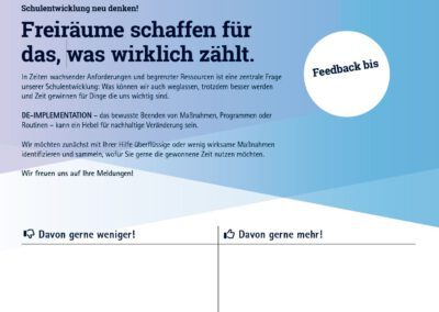 Das Thema wurde insgesamt sehr interessiert aufgenommen. Die Gespräche, Rückmeldungen und Arbeitsergebnisse zeigten deutlich, dass der bewusste Umgang mit Zeit, Ressourcen und schulischen Routinen als wichtige Voraussetzung für nachhaltige Schulentwicklung verstanden wird.