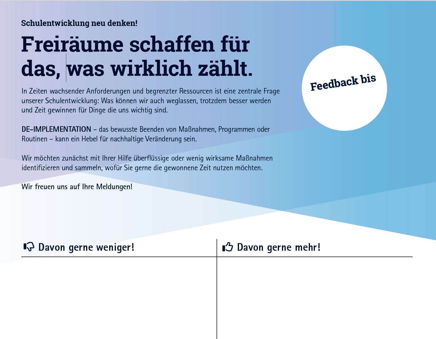 Was können wir weglassen, um unsere Schule besser zu machen?