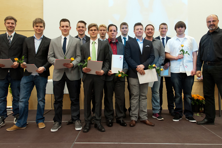 Mit ganz besonderem Erfolg haben Simon Schäffer aus dem Bereich Maschinenbautechnik mit der Note 1,2, Annika Wenke aus dem Bereich Gestaltungstechnik mit der Note 1,0 und Leonie Maleszka aus dem Bereich Elektrotechnik mit der Note 1,5 die Prüfung bestanden.