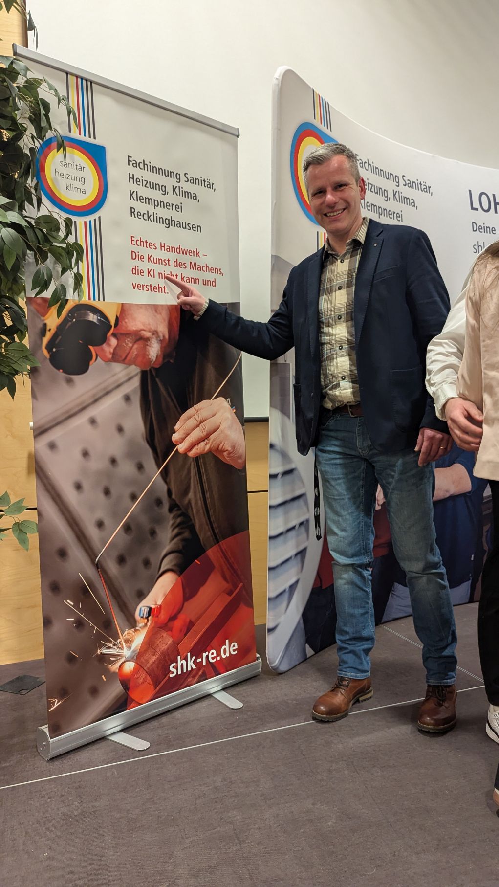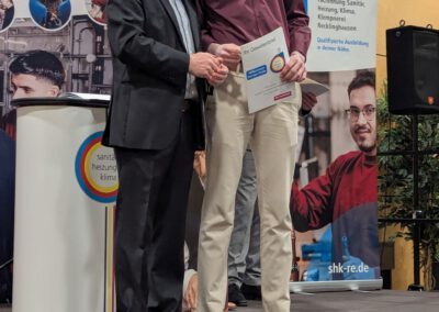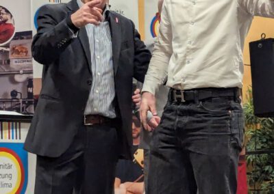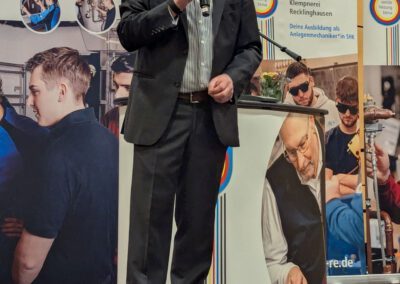 Herr Patrick Schmidt würdigte in seinem Grußwort das handwerkliche Können und zeigte sich zuversichtlich, dass KI den SHK-ler nicht ersetzen könne.