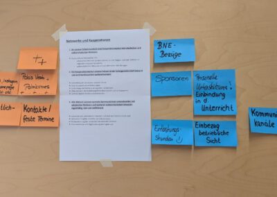 Gemeinsam wurden die fünf Entwicklungsfelder der BNE-Zukunftslandschaften analysiert. Leitfragen dabei waren: