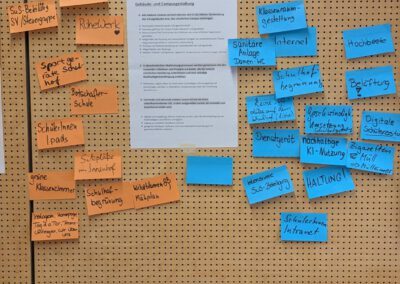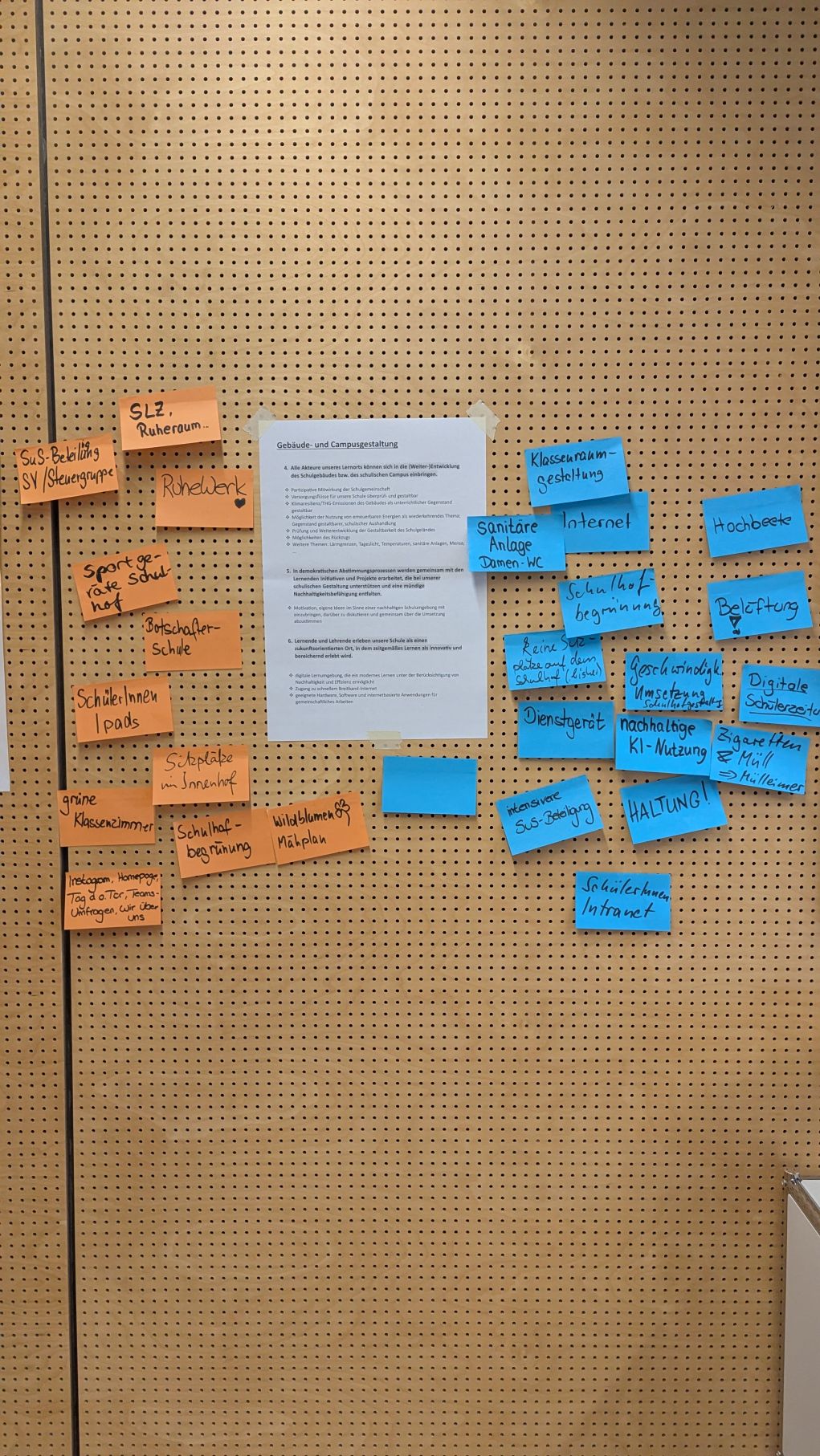 Schülerinnen und Schüler der SV, Lehrkräfte aus der Steuergruppe, der erweiterten Schulleitung, dem Feelgood-Team, der Steuergruppe, dem Europateam, dem Förderverein, der Digitalisierungsgruppe sowie der AG Regenerative Energietechnik. Diese vielfältige Zusammensetzung ermöglichte einen umfassenden Blick auf die aktuelle Situation unserer Schule.
