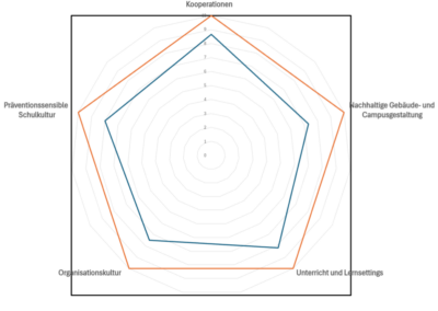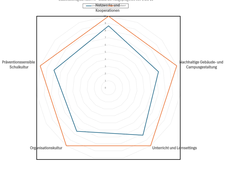 Die Ergebnisse wurden in einem sogenannten Spinnennetz visualisiert. Dabei wurde deutlich, dass das Max-Born-Berufskolleg bereits in vielen Bereichen sehr gut aufgestellt ist.