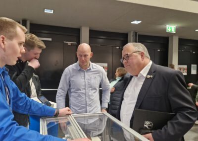 „Am Max-Born-Berufskolleg erlebt man Technik, die gelebt wird: Hier wird gezeigt, erklärt und diskutiert – so entstehen Innovationen. Teamarbeit, Durchhaltevermögen und Improvisationsfähigkeit sind Kompetenzen, die immer wichtiger werden“, betonte Staatssekretär Hovenjürgen. Technische Berufe seien das Rückgrat unseres Wohlstands. Sein Dank galt der Schule, den beteiligten Unternehmen und den Studierenden, die mit ihren Projekten Verantwortung für eine moderne Zukunft übernehmen.