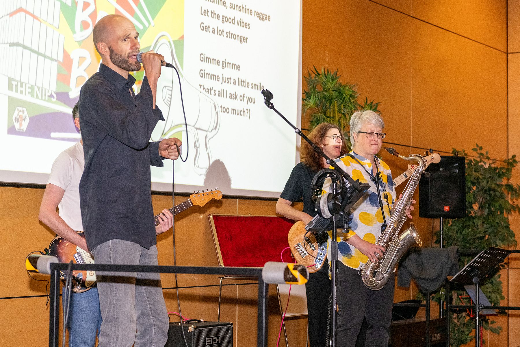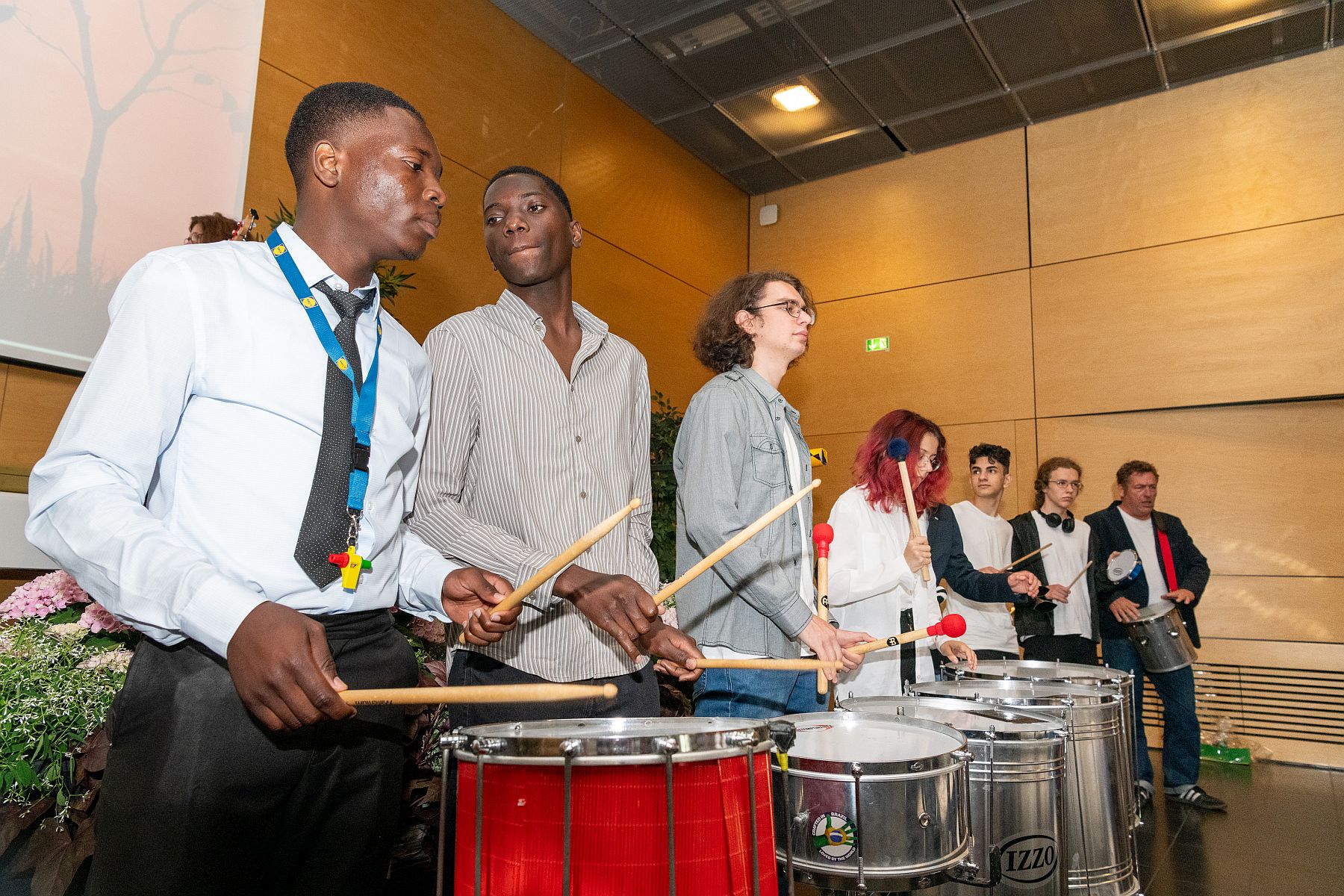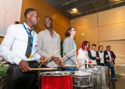 Ein weiteres Highlight der Verabschiedung war die musikalische Begleitung der Lehrerband „Die Paukaz“ und die Einlage der Trommel-AG „Samba Esperanza“ die aus Schülerinnen und Schülern der internationalen Förderklasse besteht.