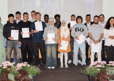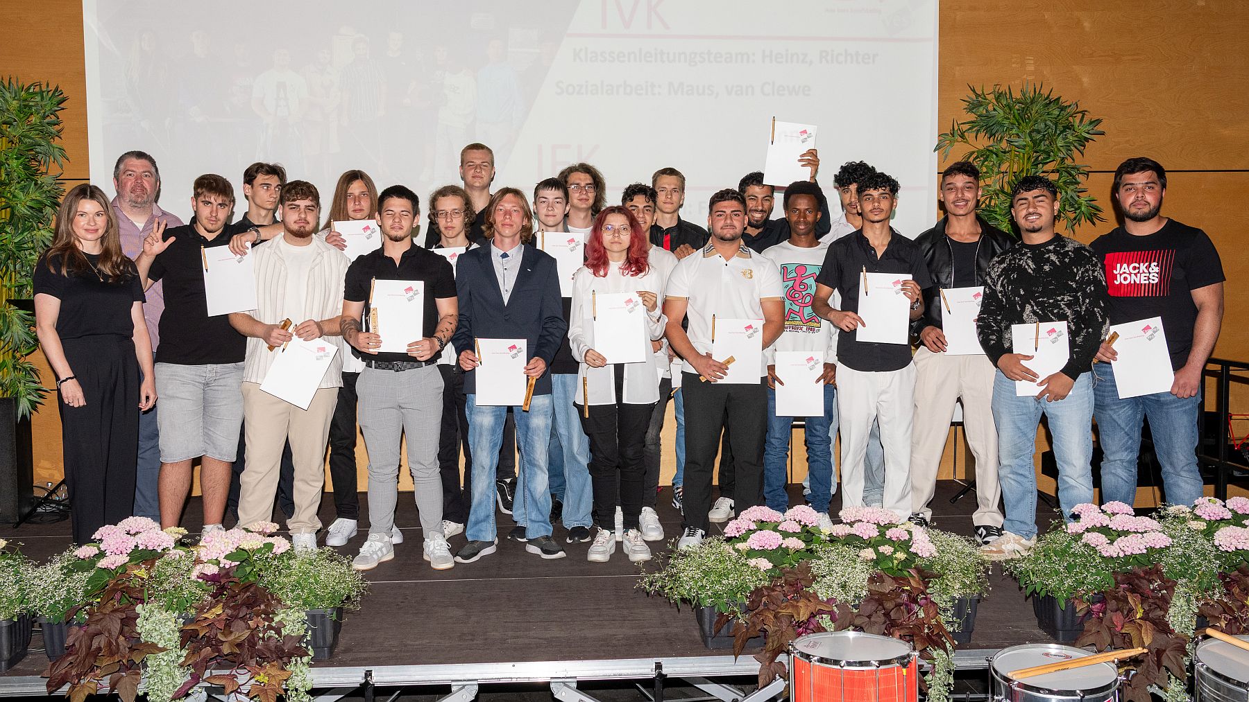 Am Donnerstag, den 10.Juli.2025, versammelten sich in der Aula des Max-Born-Berufskollegs 141 Absolventinnen und Absolventen der BF- und IF- Klassen. Zusammen mit Familien sowie Klassenleitungen und Fachlehrer/innen wurden in feierlichem Rahmen die Zeugnisse überreicht.