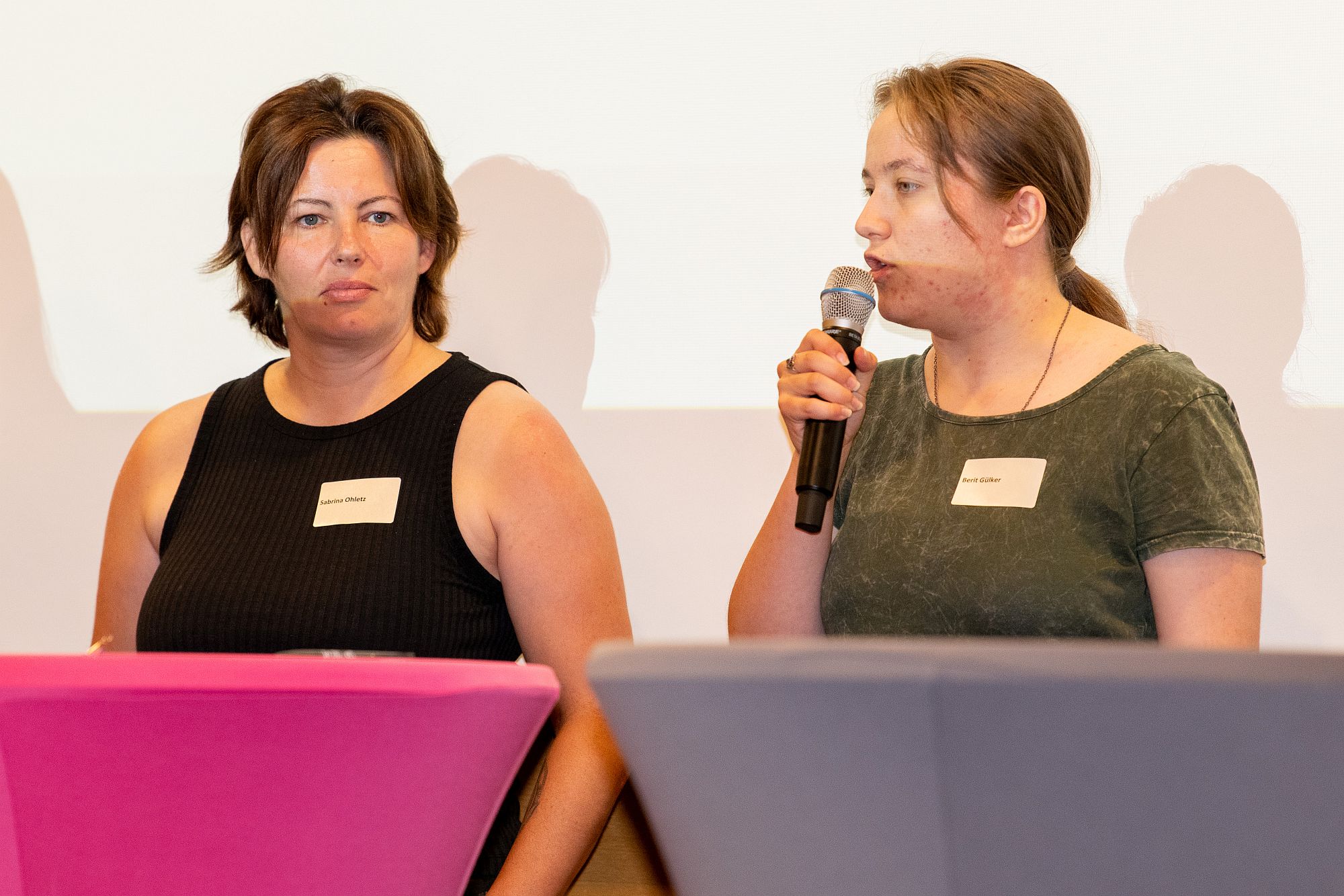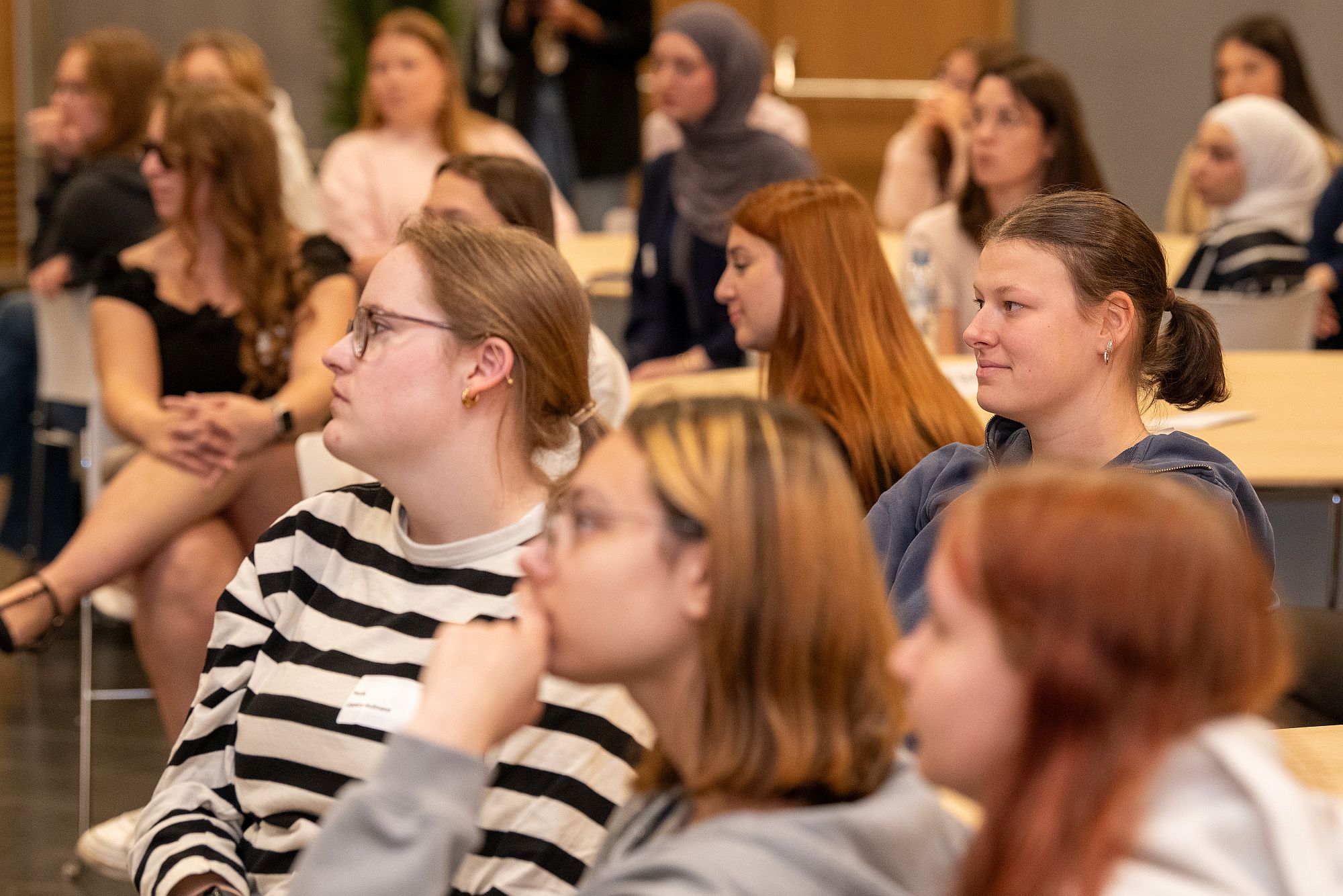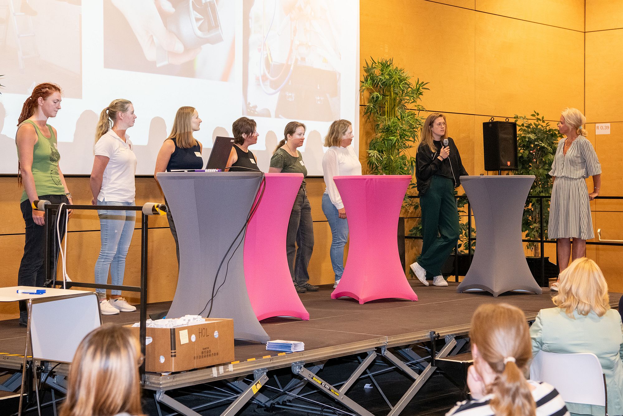 Im Anschluss stellten sich weitere Expertinnen aus verschiedenen Bereichen vor: Eine Bauingenieurin, Fachfrauen aus der Bautechnik, dem Malerhandwerk, der Elektrotechnik, dem technischen Systemdesign und der Kältetechnik gaben spannende Einblicke in ihre Berufe – und in persönliche, oft nicht gradlinige Karrierewege, die Mut machten und begeisterten.